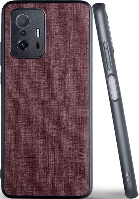 Xiaomi 11T Pro ケース 6.67"生地パターンレザー高級に保護純色スマホケースXiaomi Mi 11T Pro 5G (Dark Red) b