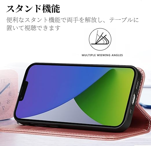 【機能性①】:スタンド機能が付いて、横向いて斜めに立てて、お好きな角度に調整することができ、映画や読書を楽しむ際に両手を解放され、とてもの便利さを持ちます。