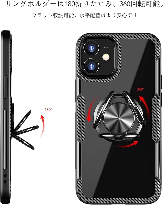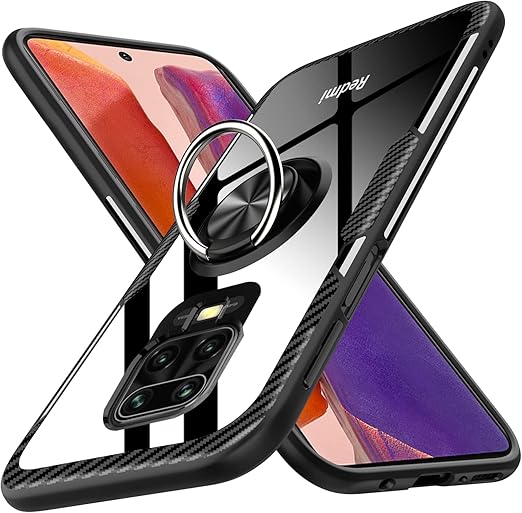 Duluqboba Redmi Note 9S ケース クリアケース リング付き 耐衝撃 背面強化ガラス スマホケース 米軍MIL規格 透明 薄型 9H背面 スタンド機能 車載ホルダー 黄変防止 TPUバンパー 落下防止 レンズ保護 滑り防止 軽量 一体型 シャオミ リドミーノート9s用カバー 黒 AYS-17-47 a