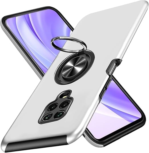 GTUJWN Xiaomi Redmi Note 9S ケース リング付き TPU 耐衝撃 スマホケース 車載対応ホルダー対応 スタンド機能 軽量 薄型 シャオミ レッドミー ノート9S ケース カメラ保護 衝撃吸収 指紋防止 黄変防止 ストラップホール 一体型 四隅滑り止め 手触り良い 保護カバー 銀 SJ15.131 a