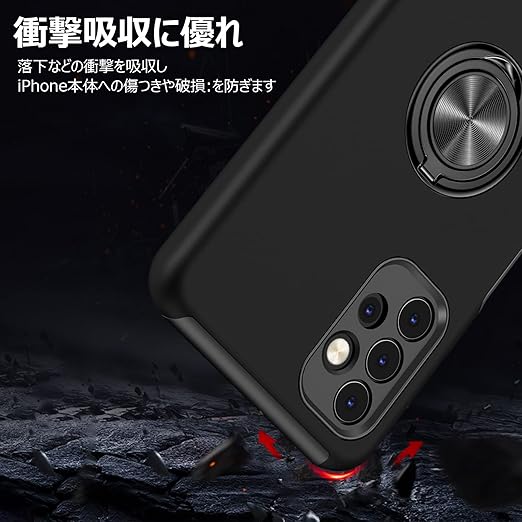 【素材】PC+TPU+金属リング。衝撃吸収性能の高いハードな"PC”素材をベースに、見た目のアクセントだけでなく、落下時の衝撃分散にも効果的な"TPU"素材のフレームを組み合わせました。軽量薄型、携帯電話本体とピッタリ密着しており、長く持っても手が疲れる感じもありません。
