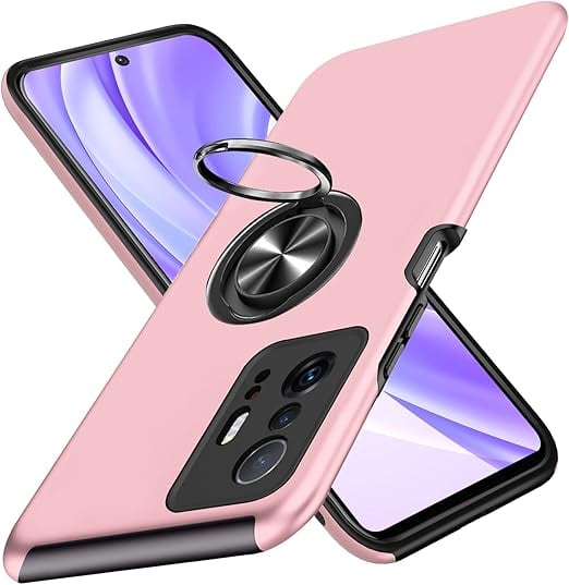 GTUJWN Xiaomi 11T Pro ケース Xiaomi 11T ケース リング付き TPU 耐衝撃 スマホケース 車載対応ホルダー対応 スタンド機能 軽量 薄型 シャオミ11T Pro ケース カメラ保護 衝撃吸収 指紋防止 黄変防止 ストラップホール 一体型 四隅滑り止め 手触り良い 保護カバー ピンク SJ15.138 a