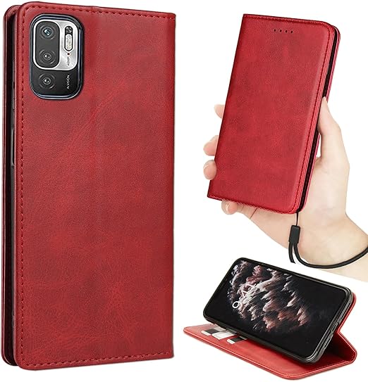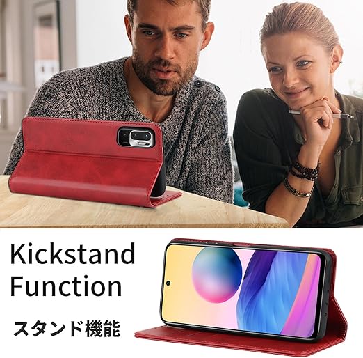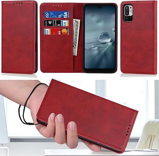 Xiaomi Redmi Note 10 JE/Note 10T A101XM ケース 手帳型 【ストラップ 一本付】 適用 Note 10JE XIG02 スマホケース レドミノート10T 手帳 Note10JE 携帯カバー 適用 case 【AIPITORR】 滑り止め 合成レザー スタンド 手首掛け ハンドストラップ カード入れ マグネット フリップ 落ち着いた色 レッド a