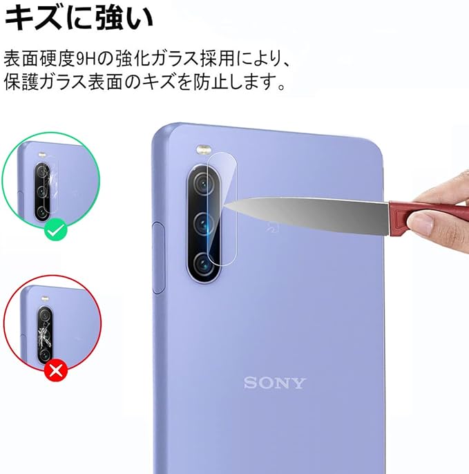 【対応機種】 Xperia10 IV 専用です。本製品の表面硬度が9Hなのため、傷や擦れに強い、ナイフや鍵などの尖ったものでも簡単には傷がつきません。強度に関してはプラスチックよりも高いと言われており、およそ数十倍の強度があります。 耐衝撃性・耐摩耗性に優れております。