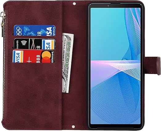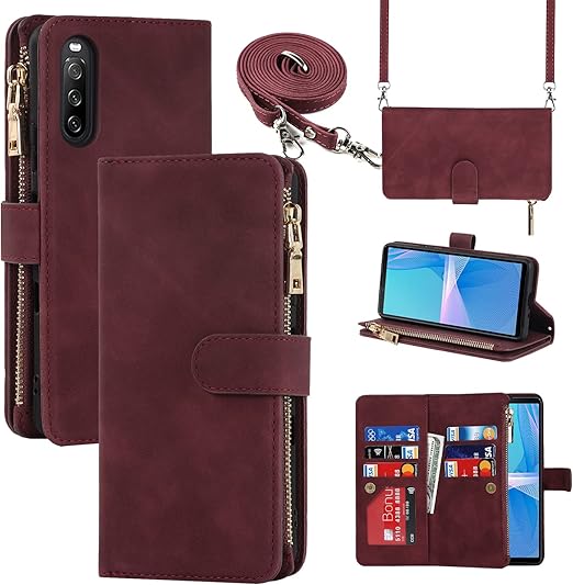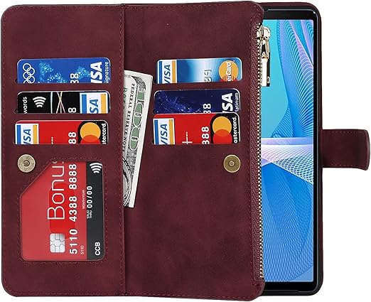 Sailortech Sony Xperia 10 III SO-52B SOG04 ケース 手帳型 SO-52B SOG04 ケース Xperia 10 III カバー合成PUレザー 財布型 内蔵マグネット 留め具装備 スマホケース カード収納 横置きスタンド 機能 小銭入れ ジッパーポケット付き 全面保護 耐久性 耐衝撃 防塵 マグネット式 エクスペリア 10 III スマホケース 携帯カバー【選べる6色】6.0in-ワインレッド a