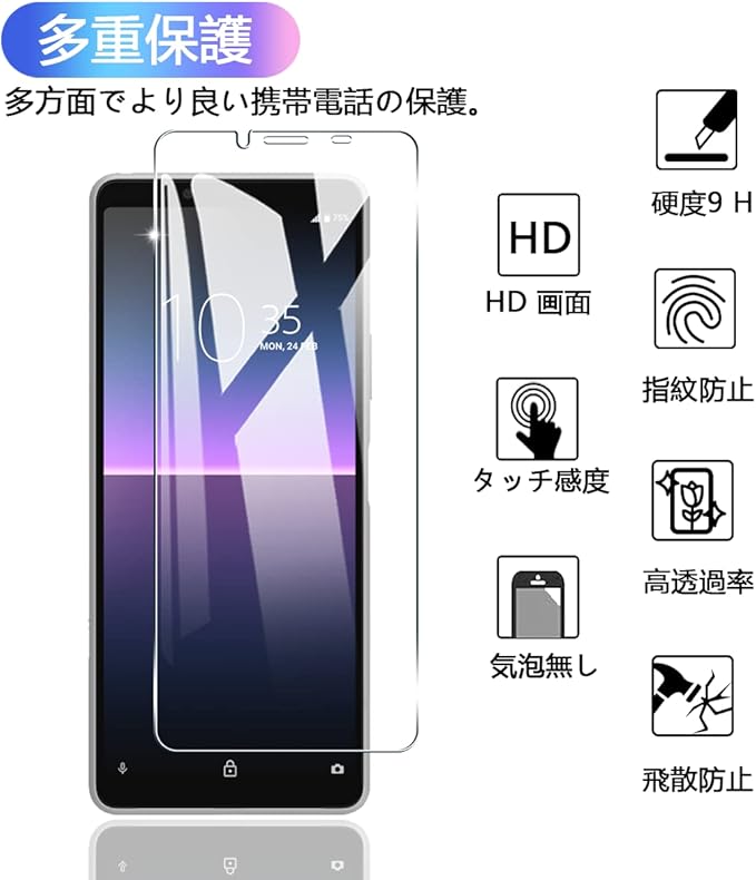 【対応機種 】 対応 Xperia 10 II SO-41A / SOV43 ガラスフィルム + カメラフィルム ,専用液晶画面保護ガラスフィルム。フィルムのシリコン自己吸着層により、スチールフィルムを携帯電話に合わせて軽く置くだけで、気泡が入らないように簡単に取り付けられます。