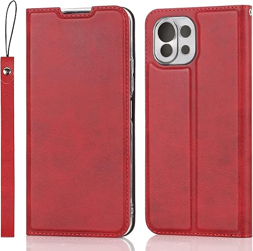 Pelanty for Xiaomi Mi 11 Lite 手帳型ケース 11lite 5G 携帯カバー PUレザー カード収納 スタンド機能 衝撃吸収 ストラップ付き マグネット式 シャオミ ミー 11 lite 5g スマホケース 全面保護カバー 軽量薄型 耐衝撃 レッド a