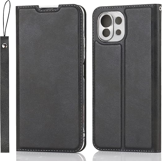 Pelanty for Xiaomi Mi 11 Lite 手帳型ケース 11lite 5G 携帯カバー PUレザー カード収納 スタンド機能 衝撃吸収 ストラップ付き マグネット式 シャオミ ミー 11 lite 5g スマホケース 全面保護カバー 軽量薄型 耐衝撃 ブラック a