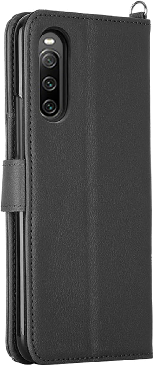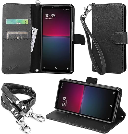 wisers Xperia 10 IV ケース 手帳型 SO-52C SOG07 A202SO スマホケース (ブラック) 牛革PUレザー (カードホルダー/スタンド機能付) ストラップ 2種付 (ハンドストラップ/ネックストラップ) カード収納 a