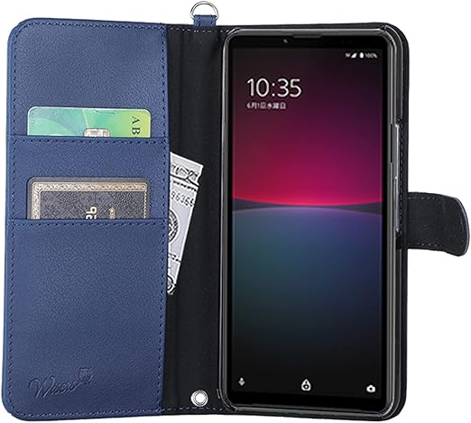 wisers Xperia 10 IV ケース 手帳型 SO-52C SOG07 A202SO スマホケース (ダークブルー) 牛革PUレザー (カードホルダー/スタンド機能付) ストラップ 2種付 (ハンドストラップ/ネックストラップ) カード収納 a