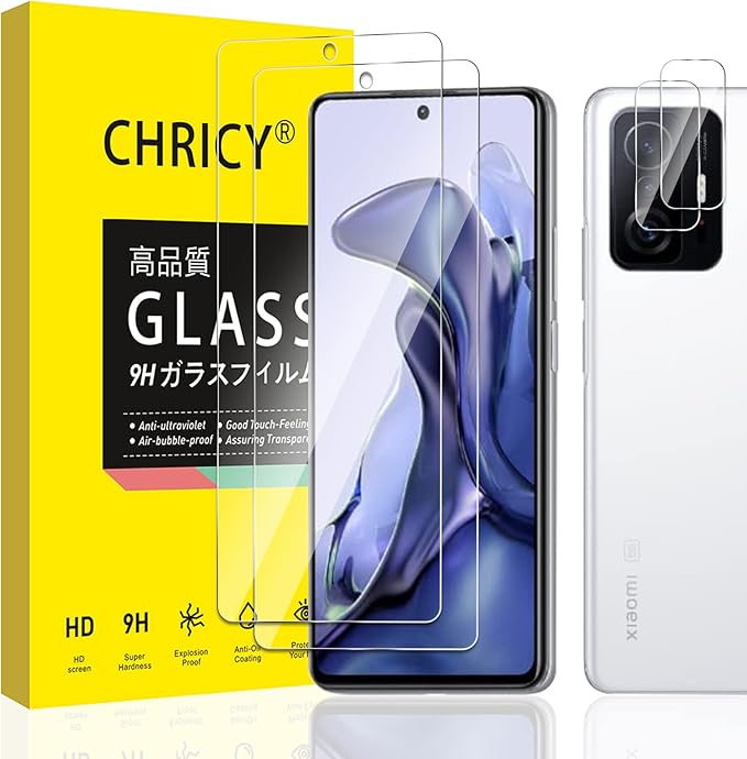 【2+2枚セット】 Xiaomi 11T / 11T Pro 用 ガラスフィルム (2枚)+ カメラフィルム (2枚) Xiaomi 11T Pro 5G フィルム 強化ガラス 液晶保護フィルム 日本製旭硝子 硬度9H 耐衝撃 高透過率 全面保護 自動吸着 気泡ゼロ スクラッチ 防止 指紋防止 撥水撥油 (XM 11T) a