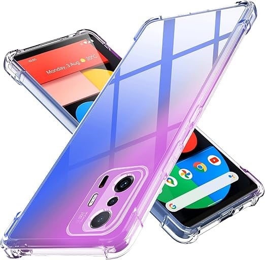 Xiaomi Mi 11T / 11T Pro ケース耐衝撃 クリア 透明 tpu 薄型 シリコン カバー レンズ保護 衝撃吸収 柔軟 軽量 指紋防止Qi充電 Pixel 6 XL 黄変防止 滑り止め 携帯カバー ワイヤレス充電対応 防塵 TPU 擦り傷防止 紫-ブルー Q053-xm11t p-02 a