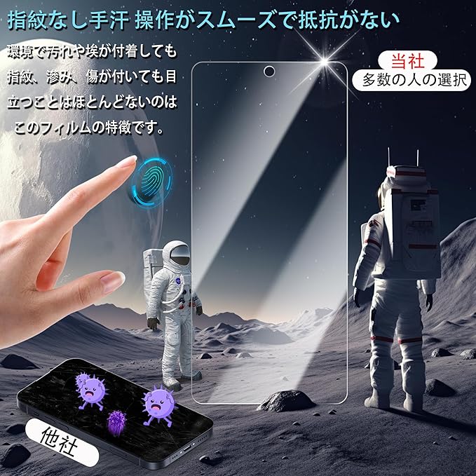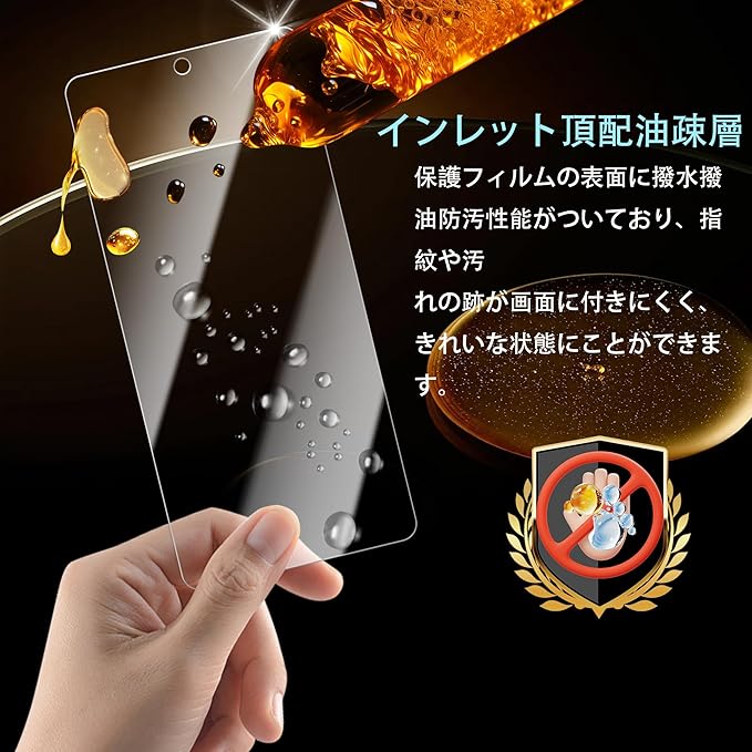 【旭硝子素材】:日本製旭硝子素材の採用、また硬度は業界最高レベルの9Hであり、カッタ一などの鋭利なものを当てたとしても損傷なく長らく使えます。気泡に悩まされることなく、より簡単に、より綺麗に液晶保護フィルムを取り付けることができます。技術性が必要ではありませ
