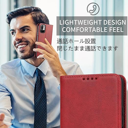 Xiaomi適用 Redmi Note 10 JE ケース 手帳型 Redmi Note 10T 手帳ケース 通用 XIG02 スマホケース レッドミ ノート10 JE ケース レッドミ ノート10T カバー A101XM 携帯カバー 【BonwFzin】 PU レザー ベルトなし マグネット フリップ カードケース カード収納 カード入れ スタンド 落ち着いた色 レトロ レッド a