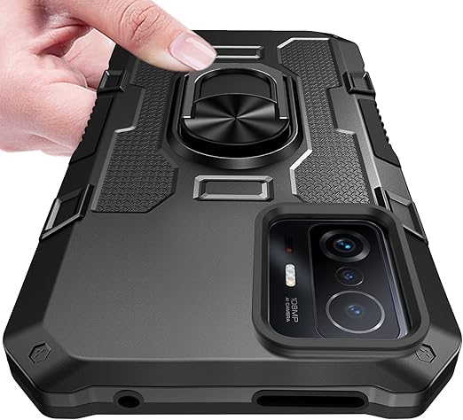 Xiaomi Mi 11T Pro ケース Xiaomi Mi 11T ケース リング付き 耐衝撃カバー スタンド機能 車載ホルダー PC+TPUバンパー カメラ保護 軽量 耐久 薄型 指紋防止 落下防止 衝撃吸収 一体型 取り出し易い おしゃれ 擦り傷防止 シャオミ11t pro リングケース 黒 KC-16-25 a