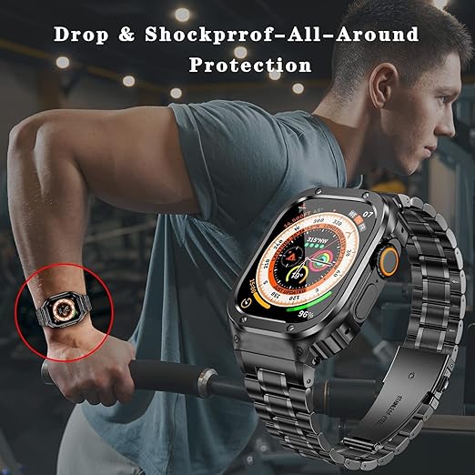 MioHHR ステンレススティール製バンド、ケース互換性 Apple Watch Bands 49mm,金属製保護バンパーカバー付き頑丈なストラップ iWatch Ultra 3 2 1 男性用 (ブラック) a