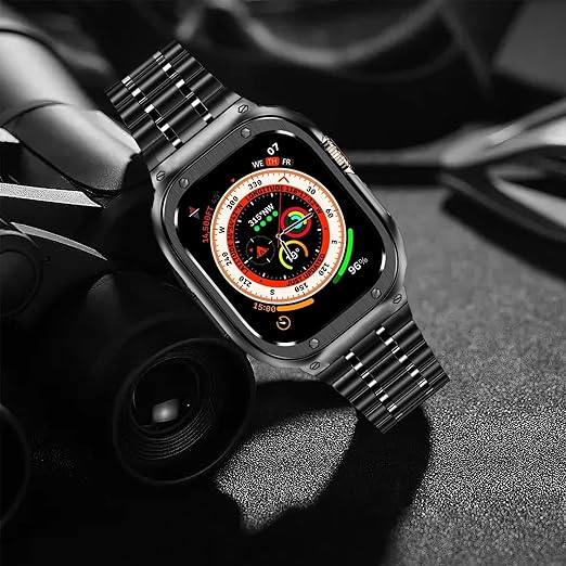 【互換性】このケース/バンドはApple WatchシリーズUltra 3/2/1 (49mm) に対応しています。腕時計バンドは手首サイズ6.5インチ~8.13インチに適しています。交換用バンドは付属のリンク取り外しツールを使って手首にぴったりフィットするように短くしたり伸ばしたりできます。取り外し可能なのは矢印の付いたチェーンのみです。損傷を防ぐため、正しい手順に従ってバンドを取り外してください。(アップルウォッチは含まれていません)
