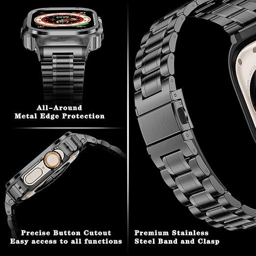 MioHHR ステンレススティール製バンド、ケース互換性 Apple Watch Bands 49mm,金属製保護バンパーカバー付き頑丈なストラップ iWatch Ultra 3 2 1 男性用 (スペースグレイ) a