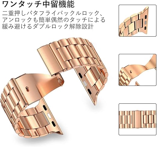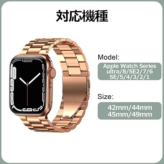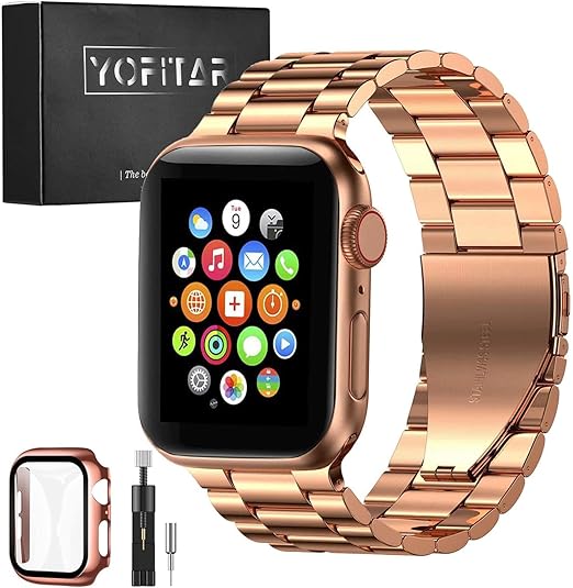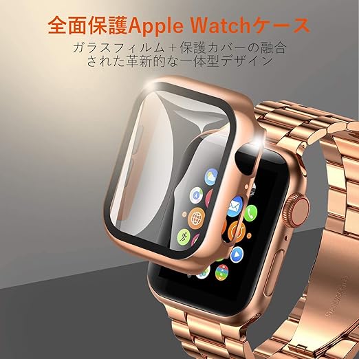 [YOFITAR] for Apple Watch バンド 保護ケース付き ステンレス製 アップルウォッチ 交換ベルト Apple Watch Ultra 2/Ultra/10/9/8/7/SE2/6/SE/5/4/3/2/1対応 iWatch バンド Apple Watchアクセサリ 長さ調整器具付き(44mm,ローズゴールド) a