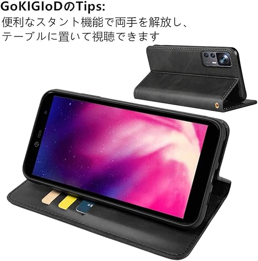 Xiaomi 12T Pro ケース 手帳型 適用 シャオミ 12T プロ スマホケース Xiaomi12T Pro 手帳型カバー Xiaomi12TProケース シャオミ12T プロ ケース 手帳 シャオミ12Tプロ手帳型ケース Xiaomi12TPro case 【GoKIGIoD】 財布型 スマホケース 内蔵マグネット 弱磁 ストラップ 同梱 カード収納 ストラップホール スタンド機能 耐衝撃 レトロ ブラック a