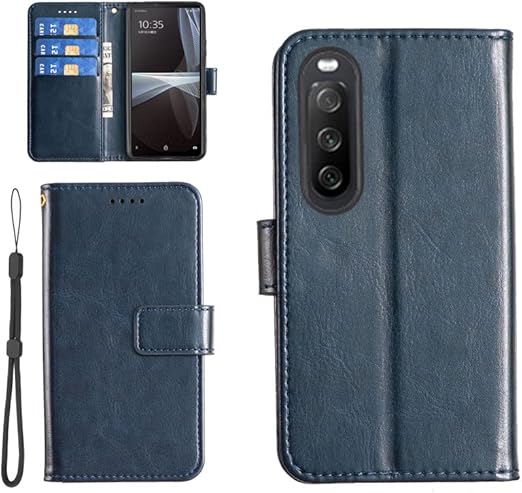 【KSK】Sony Xperia 10 III / 10 III Lite SO-52B SOG04 A102SO(6.0インチ)対応 手帳型 ケース カードエクスぺリア10 III 6インチ(ネイビー)収納 レザー 携帯カバー 銀行カード現金 スマホケース ネット スタンド 防塵 防水 スマホケース全面保護 耐摩擦手触りが良い耐衝撃 高級合皮上質 手帳型 人気 xperia10iii青 a