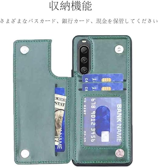 【Suumii】 手帳型 SONY Xperia 10 IV PDX-225 SO-52C au SOG07 A202SO 用 背面 手帳 カードケース ランヤード付 背面カバー (ダルグリーン)エクスペリア10 IV sog07 スマホケース サイドマグネット カード収納 横置き機能 PUレザー 財布型 携帯カバー so52c Xperia 10lV xperia10iv緑 a