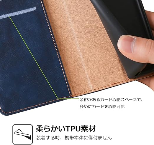 【上質な素材】高品質のPUレザーを採用し、手触りが良く、放熱性も抜群。柔らかいTPUバンパーは取り付け・取り外しが簡単で、スマホ本体への損傷も心配いりません。しっかりとした保護性能を備えています。毎日見るものだから、飽きのこないシンプルデザインを持つ。