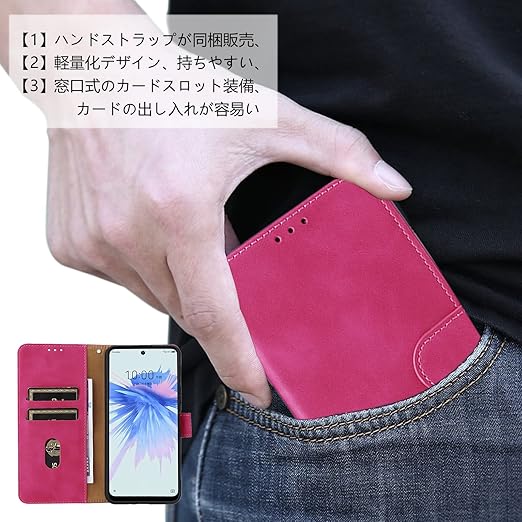 京セラ DIGNO SX3 KYG02 ケース 手帳型 【 ストラップ 一本付 】 KYOCERA用 KYG02 手帳ケース DIGNO KYG02 ケース DignoSX3+手帳型カバー 京セラ ディグノ SX3 携帯カバー 京セラSX3 手帳型 ディグノ SX3 手帳 ディグノSX3 スマホケース CASE 適用 【Heofuixt】 滑り止め 合成レザー スタンド ストラップホール付き ストラップ付き 窓口式 カード入れ マグネット 手帳ケース カードケース つや消し 落ち着いた色 ローズ a