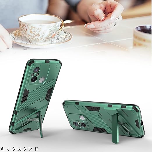 Redmi 12C ケース スタンド機能 カメラ保護 薄型 xiaomi 12c カバー (Redmi 12C, グリーン) a