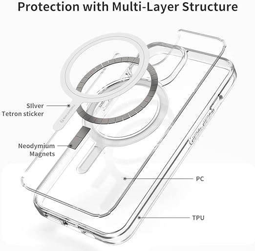 【1500Gの強い磁石内蔵】Magsafeアクセサリーの互換のために強い磁石が内蔵されました。クリアケースの背面にワイヤレス充電器、スマホリング、スマホカードケース、などの全てのMagsafeアクセサリーに対応します。