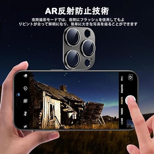 1.★★★★★【対応機種】:For iphone15pro/iphonr15pro max 用カメラレンズカバー (ブラック)。アルミニウム合金+AR高透過率強化ガラス製、15 Pro/15Pro Maxシリーズと同じ色で本体と完全に融合していく、一体感と高級感が溢れています。透過率は99%と高く、写真本来の美しさを保ったままカメラレンズを擦れや衝撃から保護します。