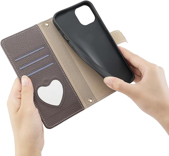 OPPO Reno10 Pro 5G ケース Reno10 Pro 5G カバー【Trocent】 オッポ リノ10 プロ 5G 用 ケース 鏡付き 化粧鏡付き 横置スタンド機能 カード収納 手帳型 肩掛け 斜めがけ 上質な手触り おしゃれ 耐汚れ 耐久性 全面保護 バイカラー 2色組合せ 二色接合 (Reno10 Pro 5G, カーキ&ブラウン) a