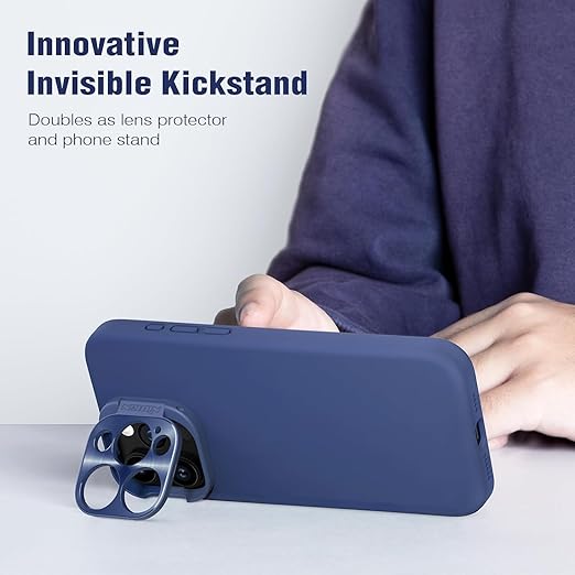 AnMengXinLing iPhone 15 Pro ケース カメラカバースタンド付き純正 全面耐衝撃 MagSafe対応ケース iPhone 15 Pro 用マグネットケース 隠しスタンド 頑丈保護ケース 液状シリコーン カメラレンズ保護 アイフォン 15 プロ ケース, 深紫 a