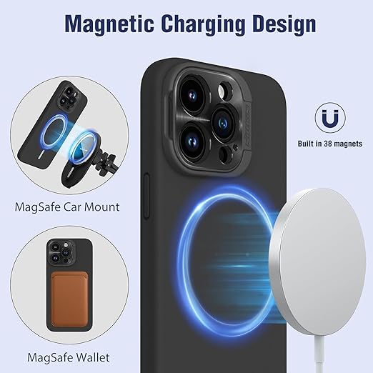 AnMengXinLing iPhone 15 Pro ケース カメラカバースタンド付き純正 全面耐衝撃 MagSafe対応ケース iPhone 15 Pro 用マグネットケース 隠しスタンド 頑丈保護ケース 液状シリコーン カメラレンズ保護 アイフォン 15 プロ ケース, ブラック a