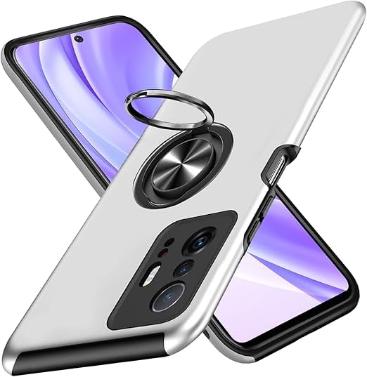 Xiaomi 11T Pro ケース Xiaomi 11T ケース リング付き TPU 耐衝撃 スマホケース 車載対応ホルダー対応 スタンド機能 軽量 薄型 シャオミ11T Pro ケース カメラ保護 衝撃吸収 指紋防止 黄変防止 ストラップホール 一体型 四隅滑り止め 手触り良い 保護カバー 銀 SJ15.246 a