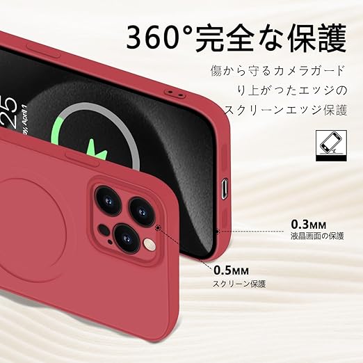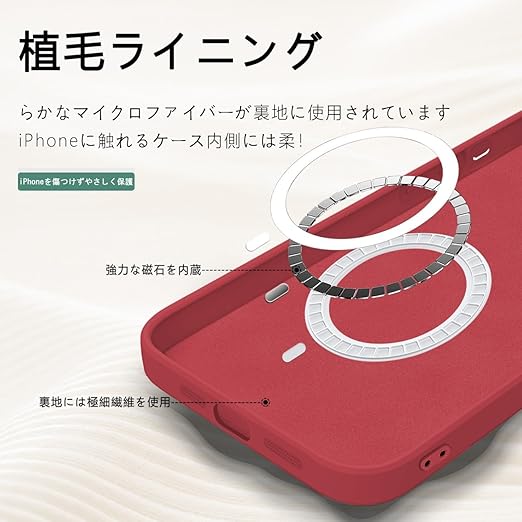 【bjnosdv】マグセーフ対応 iPhone 15Pro ケース いpほね15Pro MagSafe対応 ワイヤレス充電対応 シリコン 耐衝撃 アイフォン15Pro カバー 液体シリコーン スマホケース マット質感 柔軟 ストラップホール付き 指紋防止 滑り止め 落下防止 6.1インチ(レッド) a