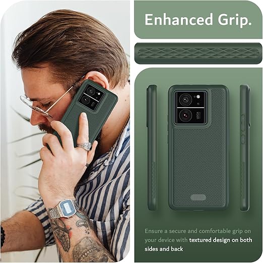 「米軍MIL規格・2層保護」TUDIA Xiaomi 13T / 13T Pro 用 ケース対応 、「MergeGrip」2層保護 耐衝撃 滑り止め 超薄型TPU Xiaomi 13T Pro 対応 ケース (パイングリーン) a