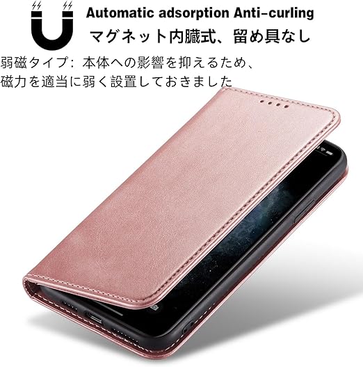 【特徴1】:マグネット内蔵のフリップケースです、留め具無しで余計な飾りも一切な