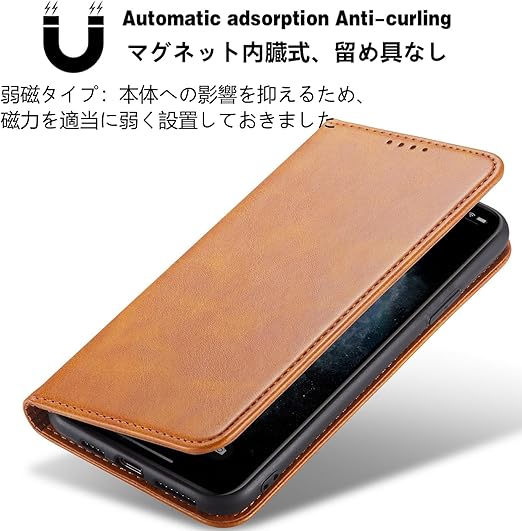 【特徴1】:マグネット内蔵のフリップケースです、留め具無しで余計な飾りも一切な
