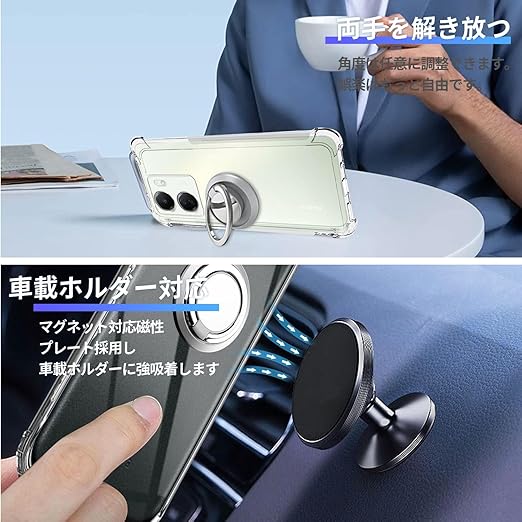 【スタンド機能 & 車載ホルダー対応】後ろに付いているフィンガーリングはスタンド機能はもちろん、滑りにくくて持ちやすい、安定的なグリップが特徴です。リングはケースにしっかり固定されていて、縦置き、横置きどんな角度でも固定できます。360度回転可能、180角度調節可能、携帯電話でビデオを見るのはとても便利です