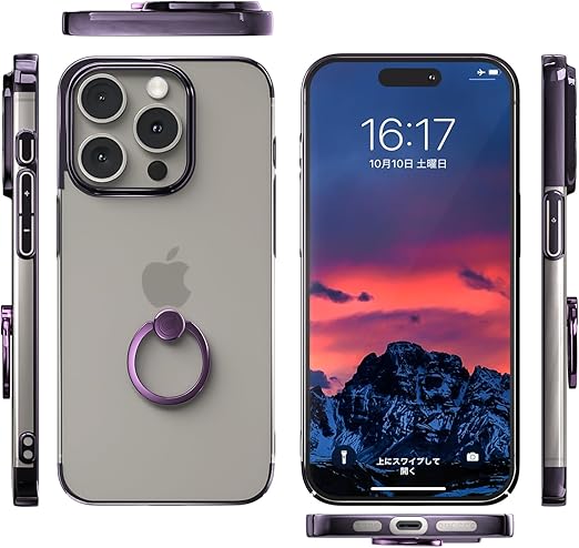 S Segoi Compatible with リング ケース iPhone 15 Pro ケース リング付き スタンド機能 メッキ加工 透明 PC 落下防止 薄型 軽量 一体型 おしゃれ 全面保護カバー 6.1インチ (パープル) a