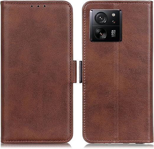 For Xiaomi 13T/13T Pro ケース 手帳型 For シャオミ 13T プロ 手帳 ケース 高級PUレザー シンプル手帳ケース 耐摩擦 サイドマグネット式 カード収納 大容量 3枚 横置きスタンド機能 耐衝撃 ダークブラウン a