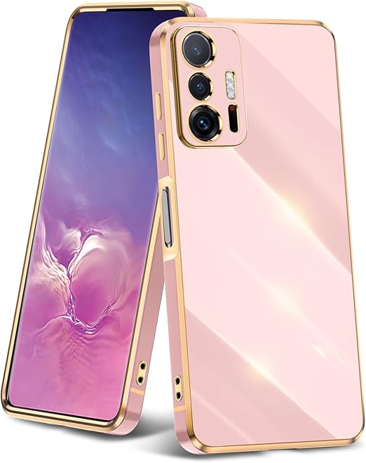 Xiaomi 11T/11T Pro 用 ケース クリア 耐衝撃 TPU ケース レンズ保護 ソフトケース 透明 メッキ加工 ワイヤレス充電 シャオミ11T/11T Pro 用 カバー ラップホール付き 薄型 軽量 メッキ枠 ピンク/ゴールド JP2-143 a