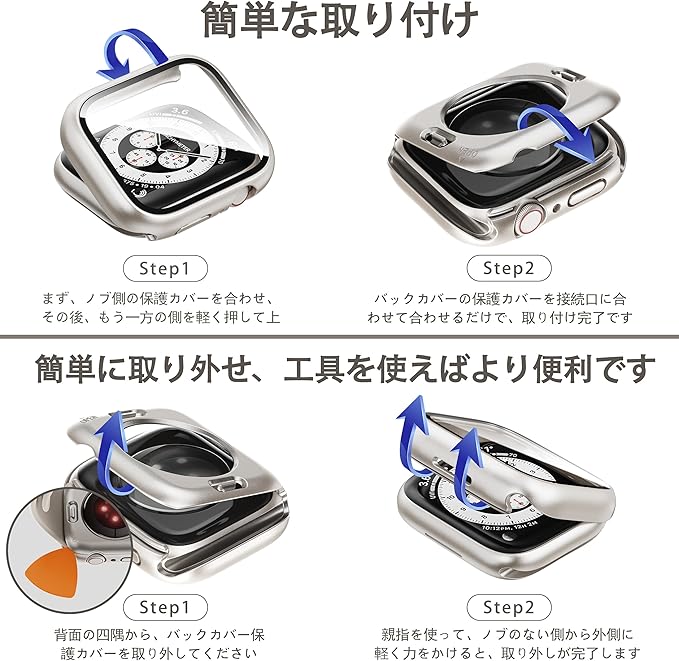 【防水&防塵】内蔵されたシールでスクリーンへの浸水を防いで、何度もApple Watch ケースを外して水を拭き取る必要がありません。 シャワー、手洗い、汗、雨、スポーツなどの日常着に最適です