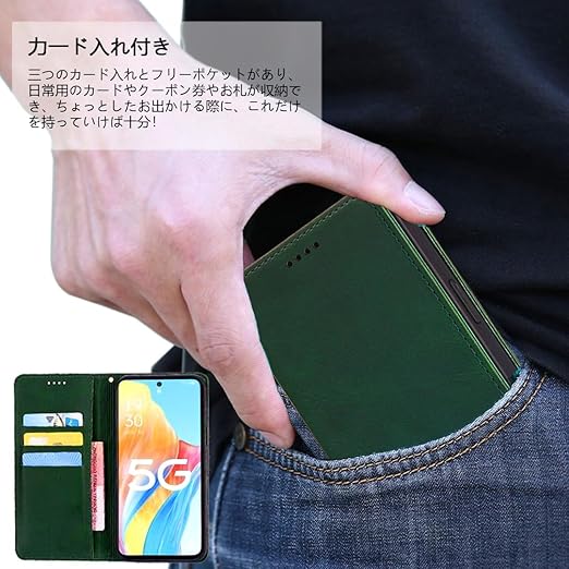 GOKIGIOD 適用 Redmi note 9t a001xm ケース 手帳型 PUレザー ストラップ 同梱 カード収納 スタンド機能 耐衝撃 Xiaomi シャオミ レドミ ノート 9t スマホケース 手帳 Redminote9t case カバー 財布型 内蔵マグネット 弱磁 ストラップホール 携帯カバー レトロ グリーン a