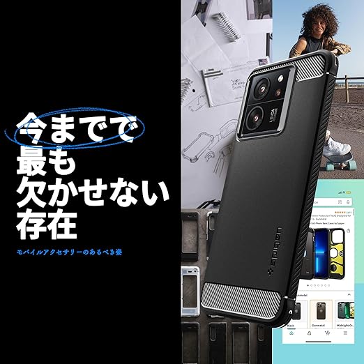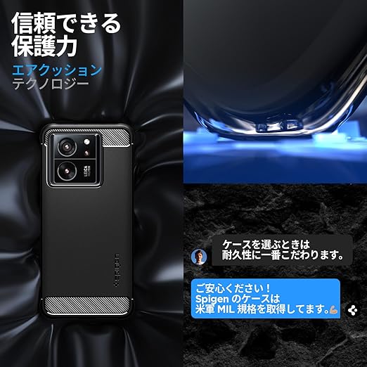 Spigen Xiaomi 13TPro 13T ケース TPU ソフトケース 米軍MIL規格取得 耐衝撃 衝撃吸収 傷防止 カメラ保護 Qi充電 ワイヤレス充電 ラギッド・アーマー ACS07502 (マット・ブラック) a