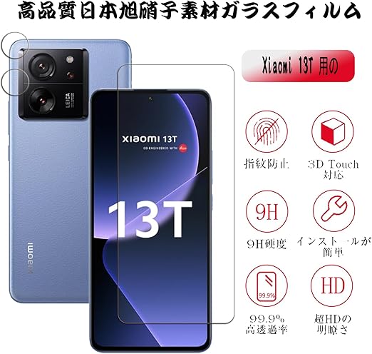 【2+2枚セット】Xiaomi 13T Pro 用のガラスフィルム(2枚)+カメラフィルム(2枚)Xiaomi 13T 用の フイルム 強化液晶保護フィルム ワンタッチ貼付け/気泡ゼロ/ケースと干渉せず/硬度9H/飛散防止/指紋防止/指紋認証対応 a