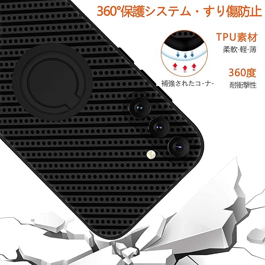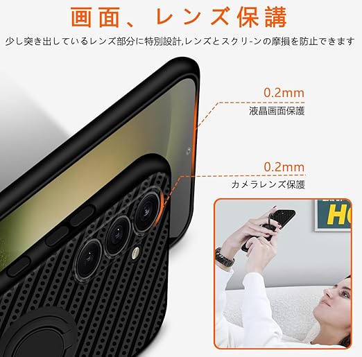 【リング付き機能】Galaxy S24 ケースを横置きにするとスタンド機能になり、持たず動画鑑賞などを楽しむことができます。リングは360度回転可能、180角度調節可能。一指着る式で、指がリングに通り抜け、片手で携帯を操作でき、落下防止します。