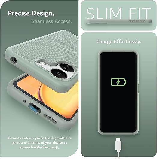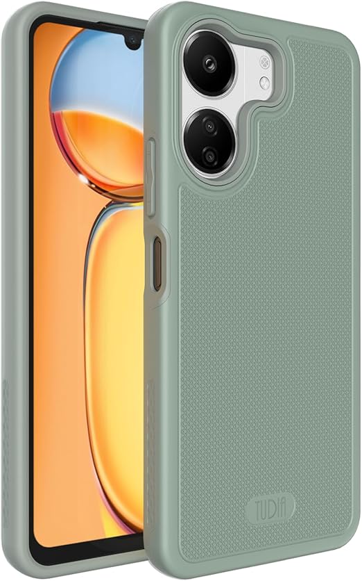 「米軍MIL規格・2層保護」TUDIA Redmi 13C 4G 用 ケース、「MergeGrip」2層保護 耐衝撃 滑り止め 超薄型TPU Redmi 13C 4G 対応 ケース (グリーンリリー) a