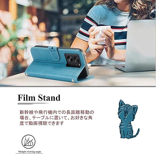 Xiaomi 13T ケース 手帳型 XIG04 au/Xiaomi 13T Pro ケース 手帳型 SoftBank 通用 SIMフリー 対応 カバー 手帳型ケース スマホケース シャオミ13T プロ ケース 携帯ケース Xiaomi13t case PUレザー TPUケース ストラップ付き 財布型 ベルトマグネット スタンド機能 かわいい 笑顔猫柄 耐衝撃 汚れ防止 薄型 ターコイズ a